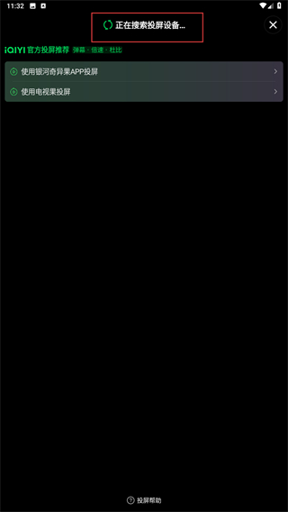 4、點(diǎn)擊后,軟件會(huì)呈現(xiàn)正在搜索投屏設(shè)備的提示。