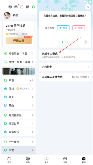 4、在該頁(yè)面內(nèi),點(diǎn)擊未成年人模式的按鈕。
