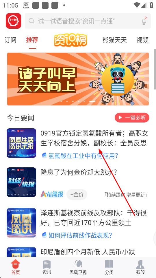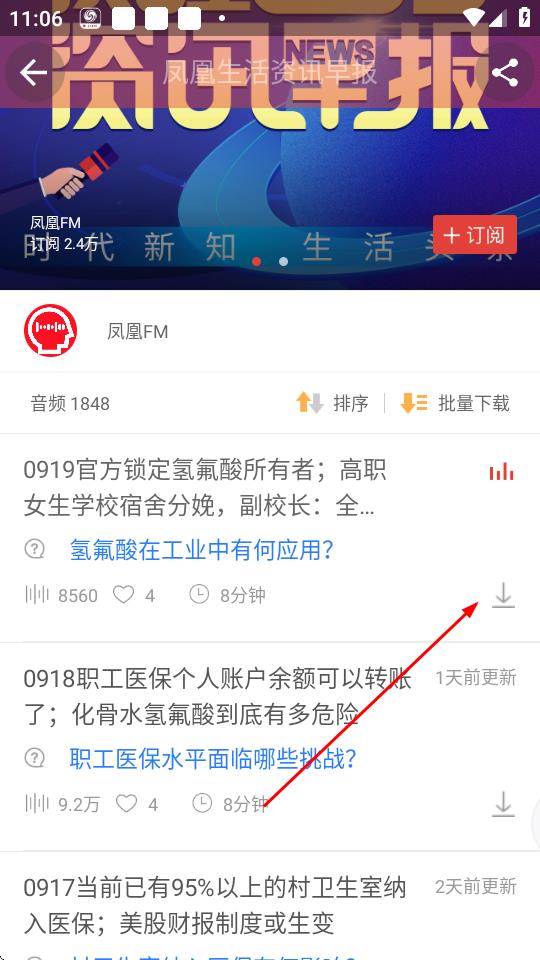 1、打開鳳凰FMAPP,在推薦頁面找到想下載的音頻內(nèi)容并點(diǎn)擊進(jìn)入。