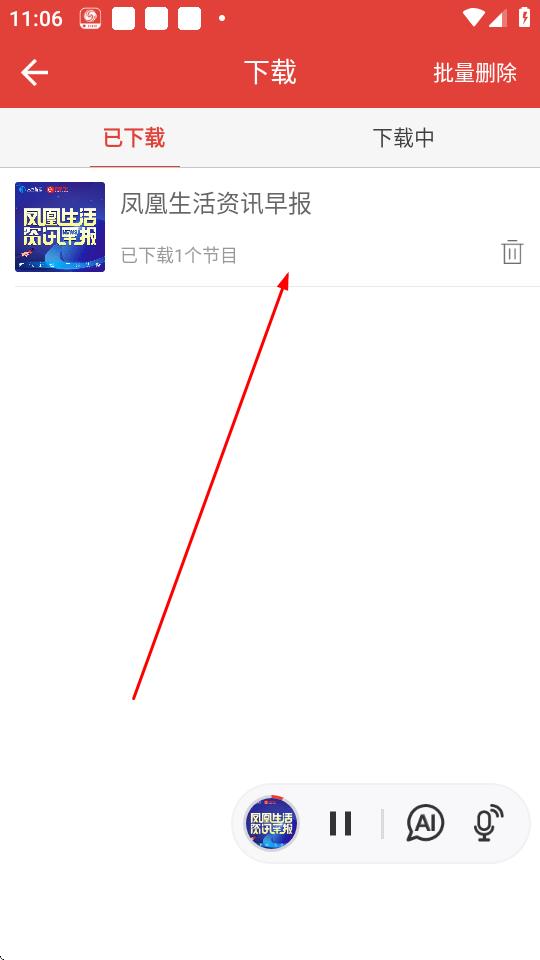 5、在下載頁面的已下載欄目中,可查看已下載完成的音頻內(nèi)容。