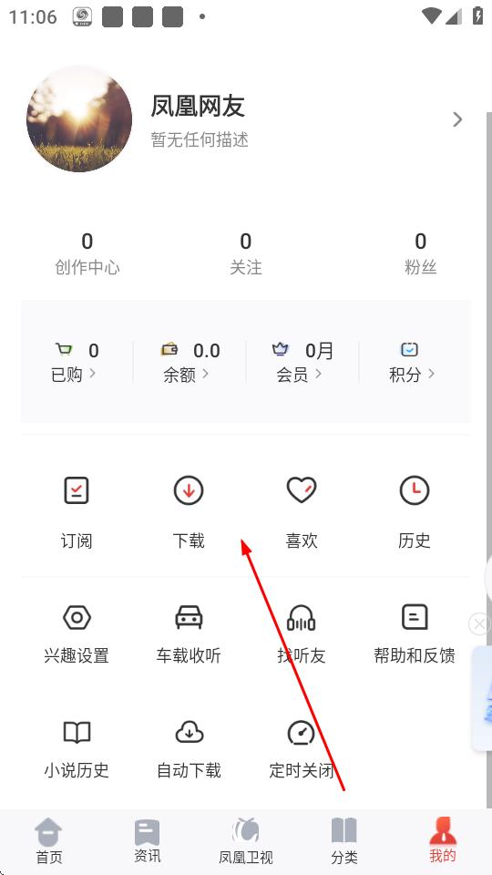 4、在我的頁面,點(diǎn)擊下載選項(xiàng)。