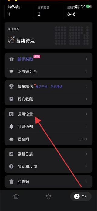 2、在個(gè)人頁(yè)面中,找到并點(diǎn)擊下方通用設(shè)置選項(xiàng)。