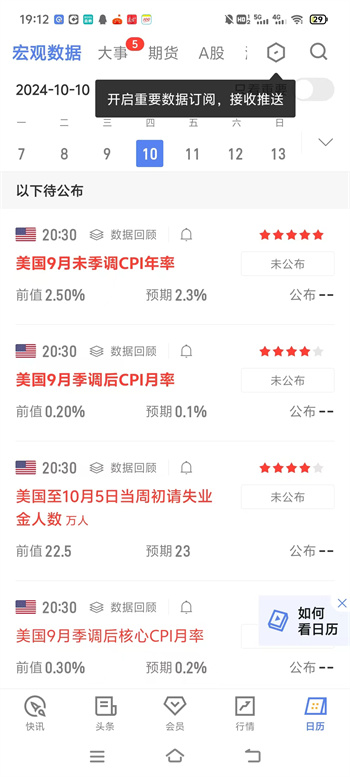 5、在這里是日歷功能,可以選擇點(diǎn)擊每日財經(jīng)資訊,每一日的資訊這里都有,無論你想要了解哪一日的消息,都可以在這里觀看回顧。