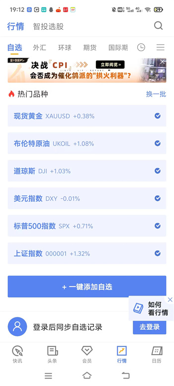 分類大宗商品、外匯、A股與期貨等,加入自選快速關(guān)注行情數(shù)據(jù)。