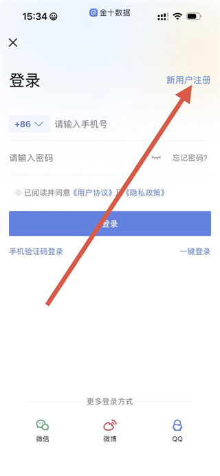 3、在登錄頁面,點(diǎn)擊新用戶注冊選項,進(jìn)入注冊界面。