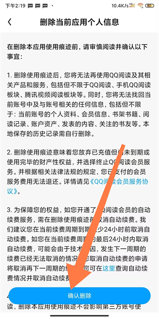 4、點擊確認(rèn)刪除按鈕,完成相關(guān)操作后,重新進入QQ閱讀,按照提示流程即可完成賬號注冊操作。