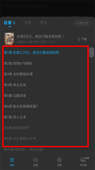 4、在目錄查看界面,即可查看該書籍的章節(jié)目錄內(nèi)容。