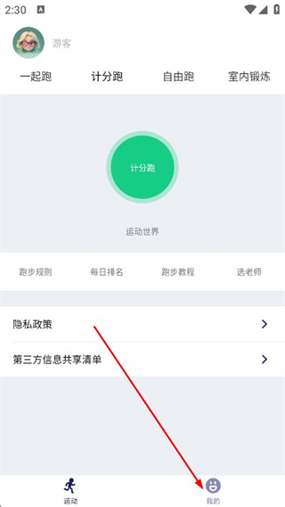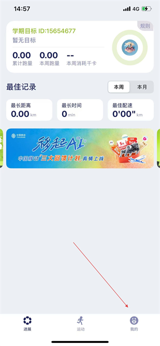 1、打開運(yùn)動世界APP,點(diǎn)擊底部我的選項,進(jìn)入個人頁面。