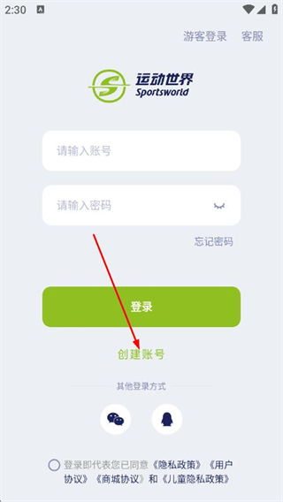 3、在登錄頁面,點(diǎn)擊創(chuàng)建賬號選項。