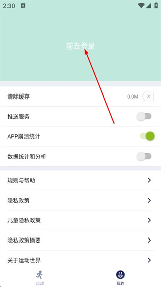 1、打開運(yùn)動世界APP,點(diǎn)擊導(dǎo)航欄我的。