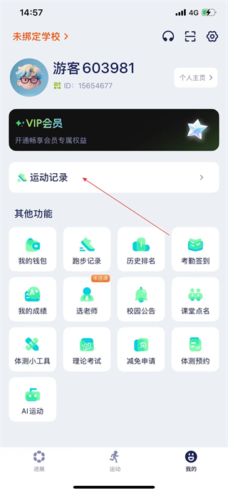 2、在個人頁面找到運(yùn)動記錄選項并點(diǎn)擊,進(jìn)入運(yùn)動記錄頁面。