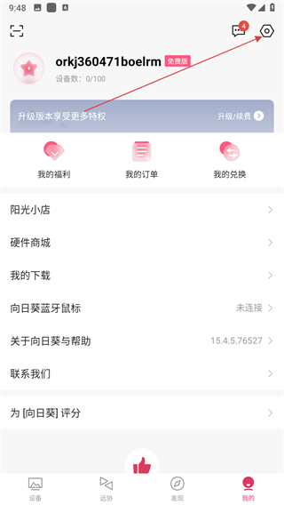 1、打開向日葵遠(yuǎn)程控制APP,點(diǎn)擊頁面底部導(dǎo)航欄最右側(cè)的我的選項,進(jìn)入個人中心頁面。