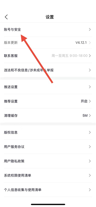 3、在設(shè)置頁(yè)面里,選擇賬號(hào)與安全選項(xiàng),跳轉(zhuǎn)至個(gè)人資料相關(guān)的配置界面。