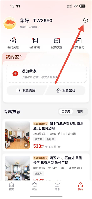 2、在我的頁(yè)面中,點(diǎn)擊右上角的設(shè)置圖標(biāo),進(jìn)入設(shè)置功能頁(yè)面。