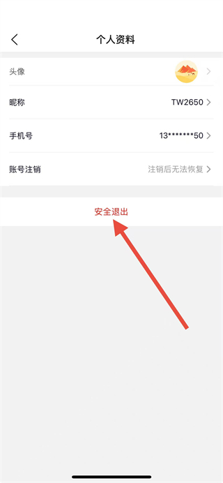 4、在個(gè)人資料頁(yè)面,找到安全退出選項(xiàng)并點(diǎn)擊,即可完成賬號(hào)的退出操作。