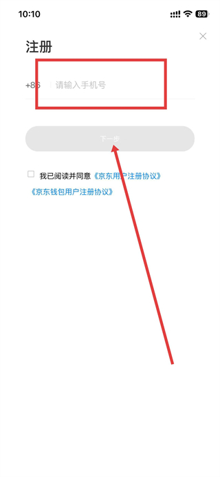 3、在注冊頁面,輸入需要登錄的手機(jī)號,點(diǎn)擊下一步。