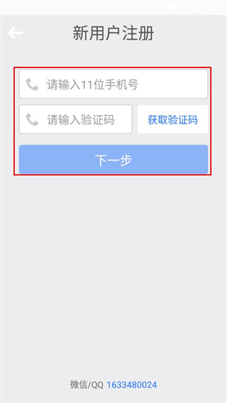 2、在新用戶注冊頁面,輸入1手機號碼,填寫收到的驗證碼。