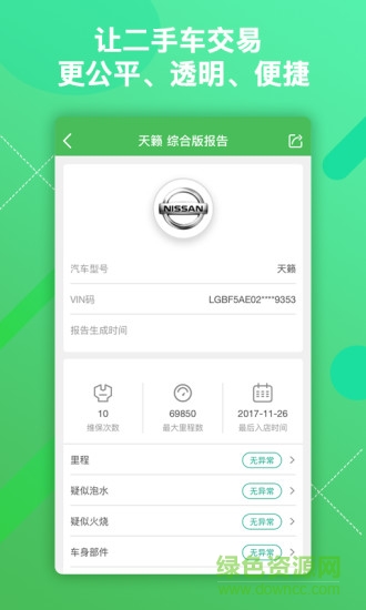 車商大師APP向廣大二手車商、汽車電商、金融平臺、個人車主提供全面、準確、高效、透明的查詢服務,服務范圍包括車輛VIN解析、維修、保養(yǎng)、碰撞報告幫助用戶進行車況判定、用車輛的歷史數據給用戶帶來最直觀的車輛價值評估依據,從而降低二手車交易風險。