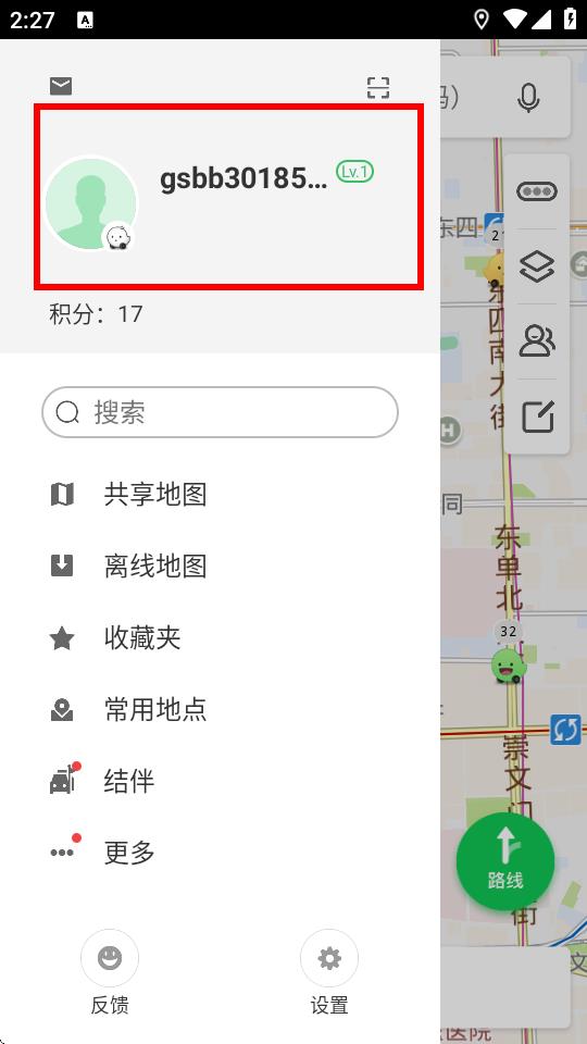 1、打開凱立德導(dǎo)航應(yīng)用,點擊界面左上角個人中心圖標(biāo)進入個人中心頁面。