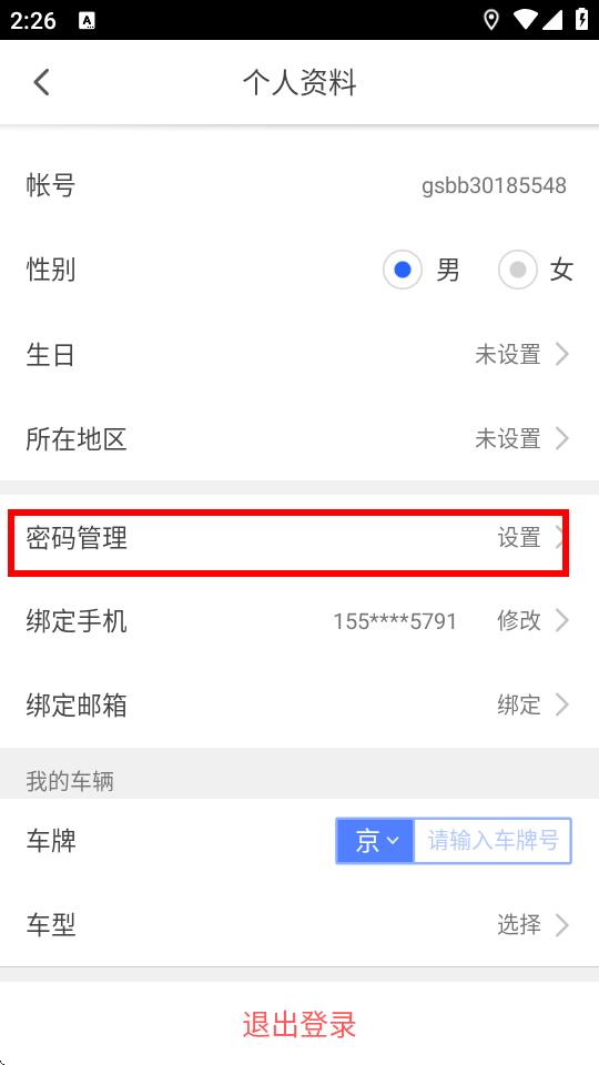3、在個人資料頁面里,找到密碼管理選項并點擊右側(cè)的設(shè)置按鈕。