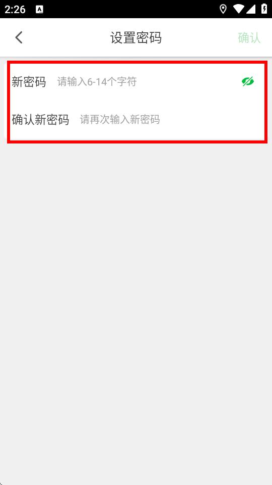 4、進入設(shè)置密碼頁面后,在新密碼框中輸入6-14個字符的新密碼,然后在確認新密碼框中再次輸入相同新密碼,點擊確認即可完成密碼修改。