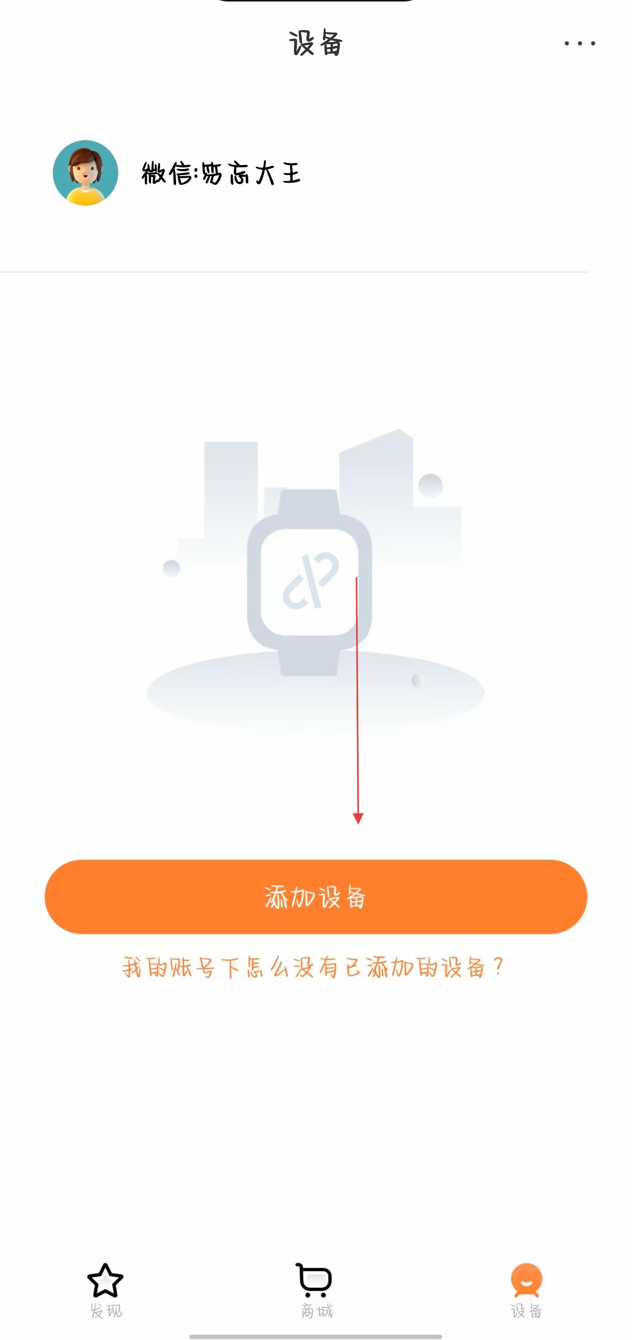 1、打開小尋APP后,在設(shè)備頁面,點(diǎn)擊添加設(shè)備。