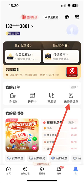 2、在個(gè)人頁面中,找到訂單查詢相關(guān)入口,進(jìn)入訂單查詢界面。
