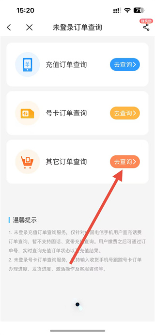 3、在訂單查詢界面,點(diǎn)擊其它訂單查詢選項(xiàng)后的去查詢按鈕,進(jìn)入快速訂單查詢界面。