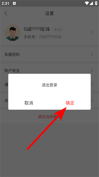 4、在彈出的退出登錄提示框中,點(diǎn)擊確定,完成退出操作。
