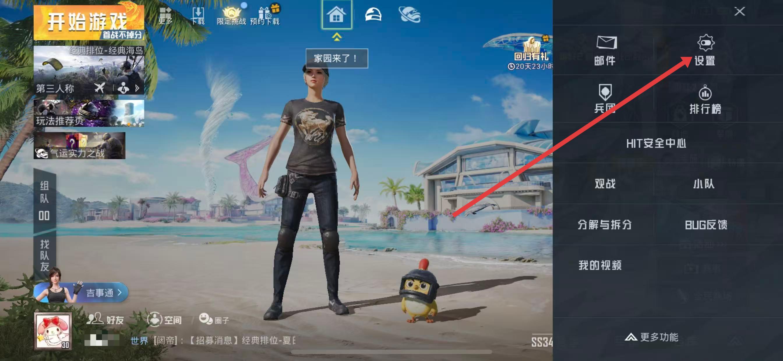 1、在和平精英游戲主界面,點擊右下角由兩個三角形組成的更多按鈕。
