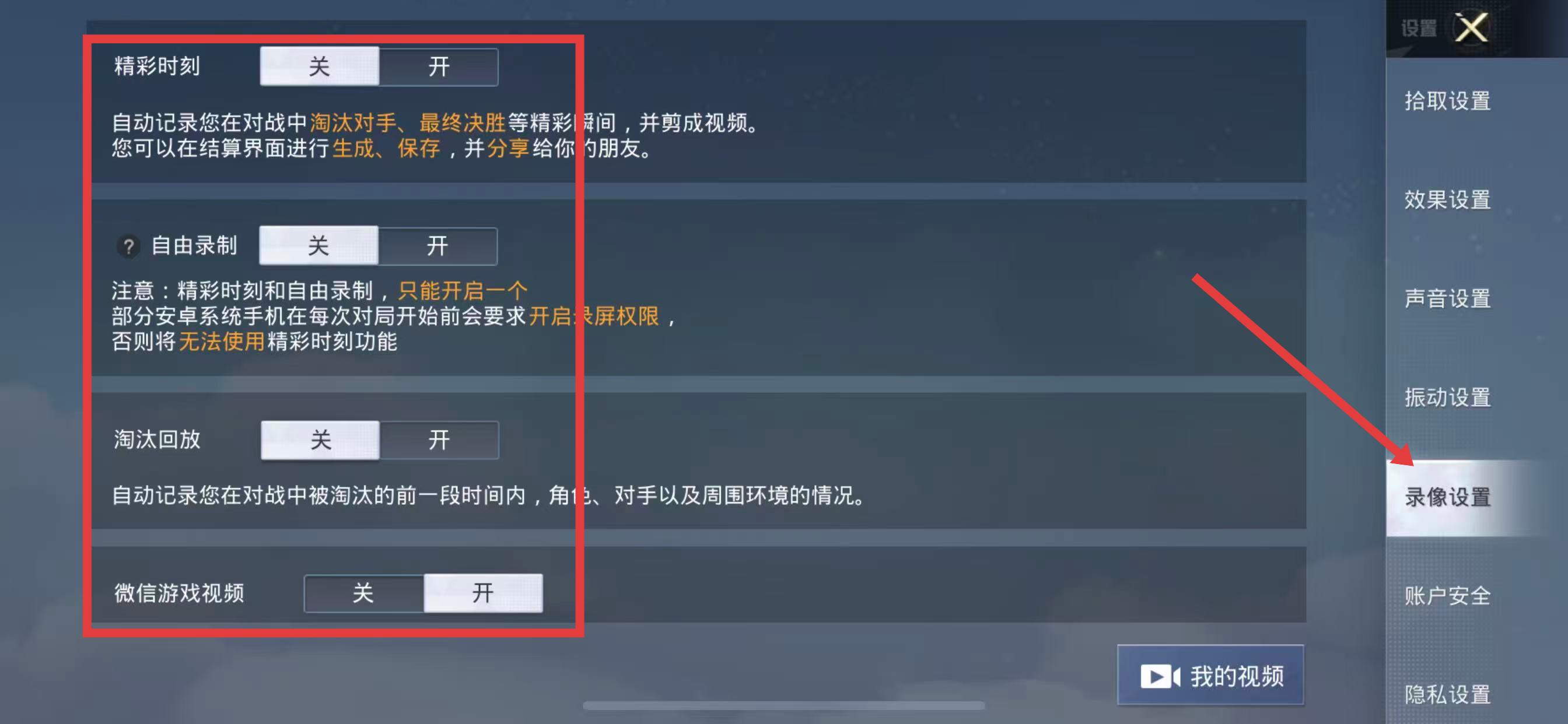 3、進入錄像相關設置頁面在錄像設置頁面,根據需求,點擊對應功能的開按鈕。