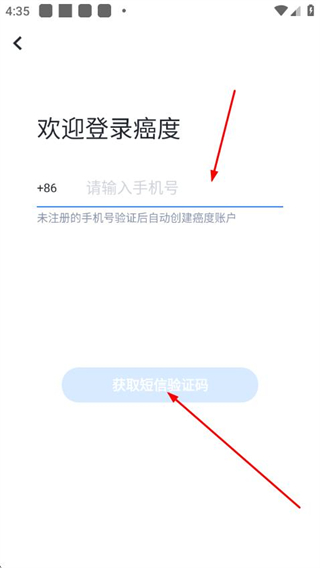 3、輸入收到的驗證碼,未注冊的手機號會自動創(chuàng)建癌度賬戶,完成注冊。