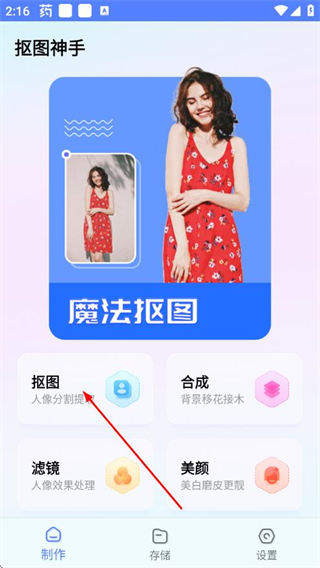 1、打開摳圖神手APP,點(diǎn)擊摳圖,進(jìn)入美化圖片界面。