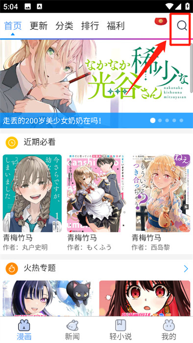 2、其次,我們?cè)谑醉?yè)的右上角能看到搜索的按鈕,直接點(diǎn)擊進(jìn)入,如下圖所示;