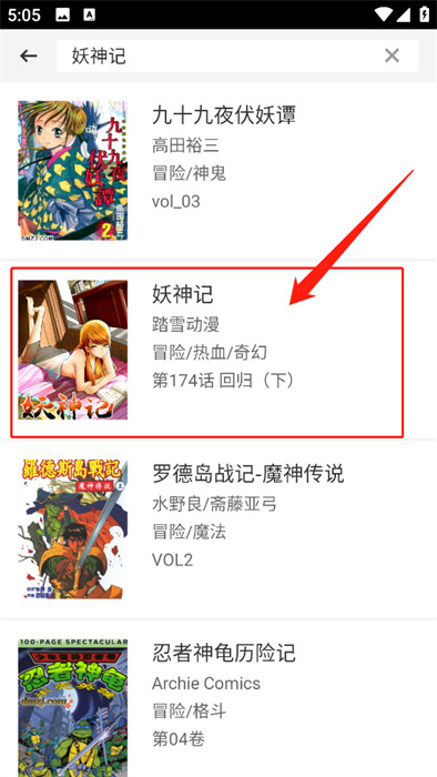 4、緊接著,軟件會(huì)根據(jù)詞匯準(zhǔn)備出海量的漫畫內(nèi)容,你可以直接瀏覽是否有自己想要查詢的漫畫名稱;
