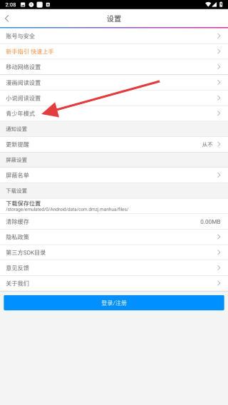 3、進(jìn)入設(shè)置的頁(yè)面內(nèi),點(diǎn)擊青少年模式的功能按鈕。