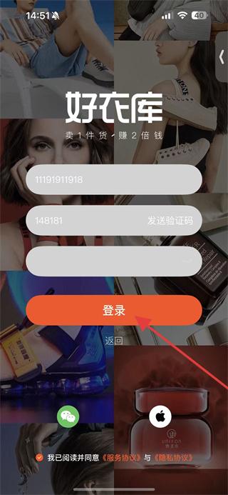 4、密碼設(shè)置完成后,點擊登錄按鈕,即可使用新密碼登錄好衣庫APP。