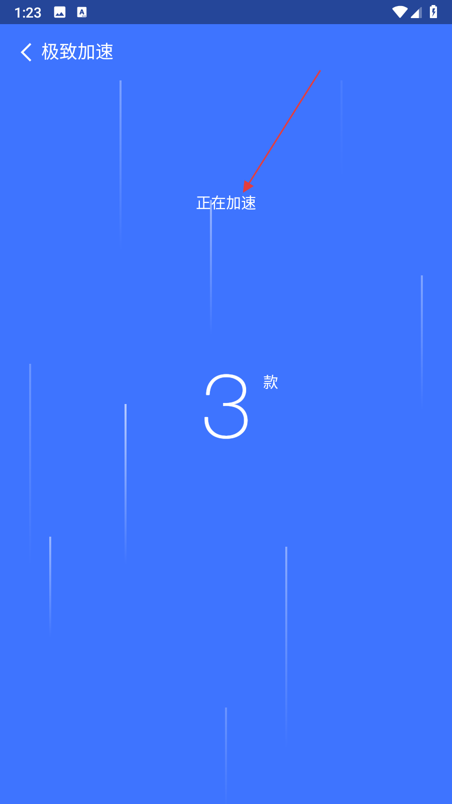 3、點(diǎn)擊一鍵清理后,界面會顯示正在加速的提示,同時能看到當(dāng)前正在加速優(yōu)化的軟件數(shù)量,等待加速過程自動完成。