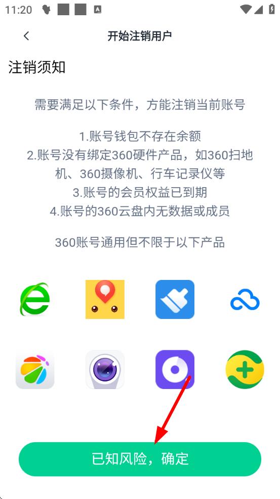 3、在注銷(xiāo)頁(yè)面,仔細(xì)閱讀注銷(xiāo)須知,確認(rèn)滿足注銷(xiāo)條件后,點(diǎn)擊已知風(fēng)險(xiǎn),確定按鈕,按照后續(xù)提示操作完成賬號(hào)注銷(xiāo)。