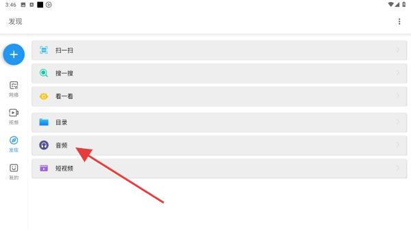 2、在發(fā)現(xiàn)的頁面中,找到并點擊音頻的選項。
