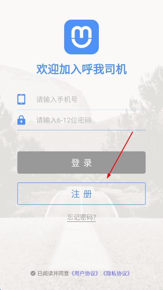 2、進(jìn)入登錄頁面,若未注冊點(diǎn)擊注冊按鈕,跳轉(zhuǎn)至司機(jī)注冊身份選擇界面,準(zhǔn)備選擇司機(jī)類型。