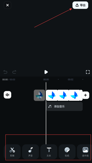 3、素材導入后,點擊界面右上角的導出按鈕,進入視頻導出設(shè)置界面。