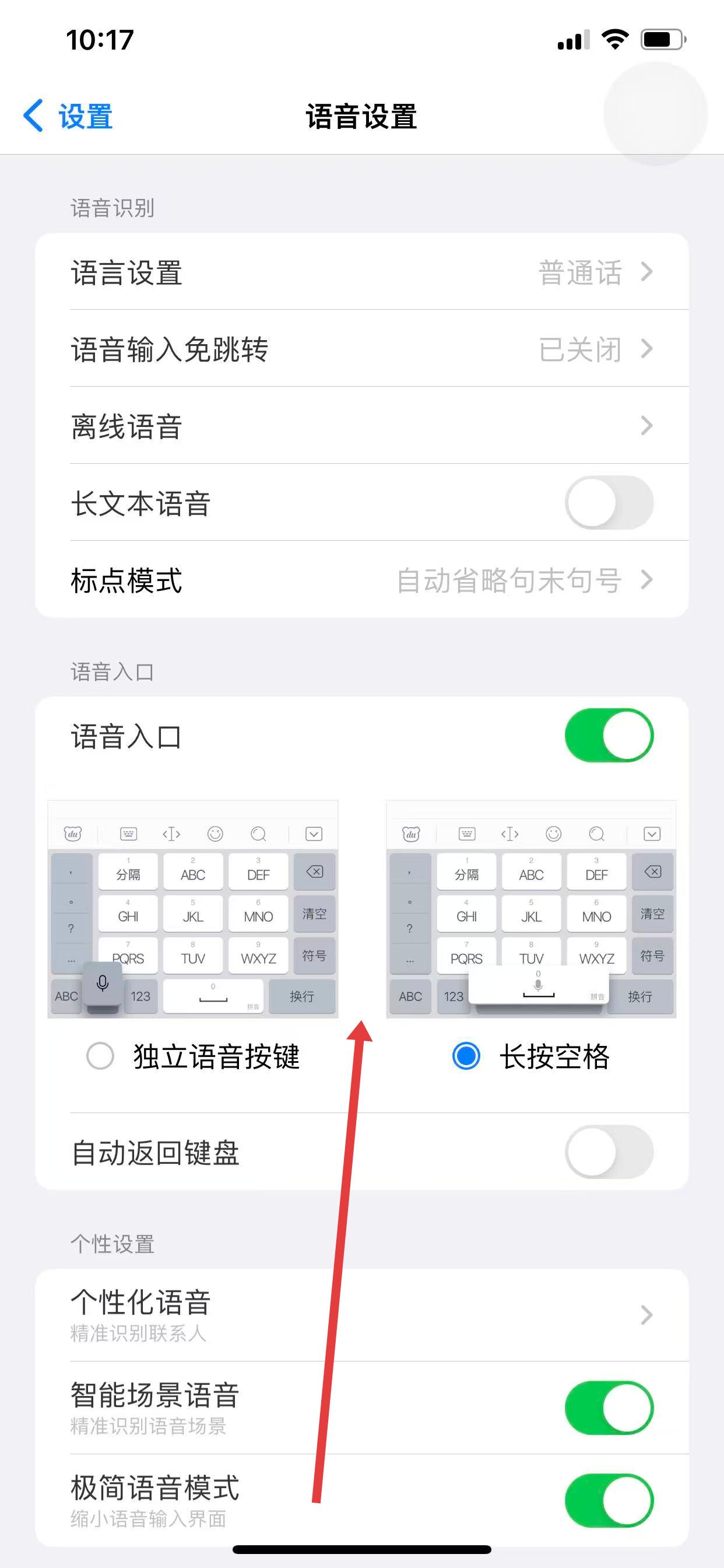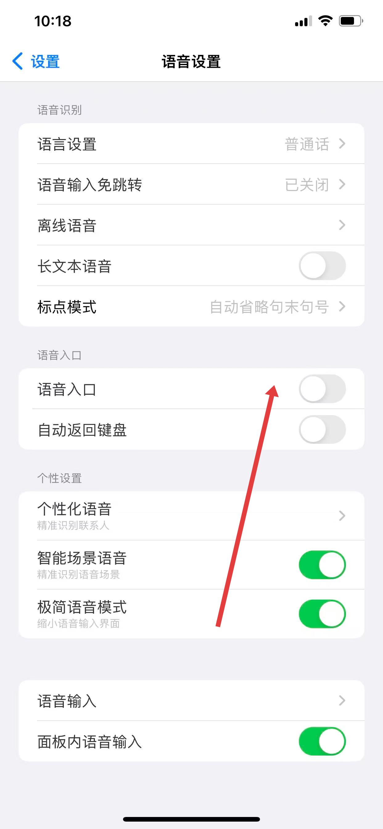 2、在語音設(shè)置界面,找到并開啟語音入口開關(guān)。