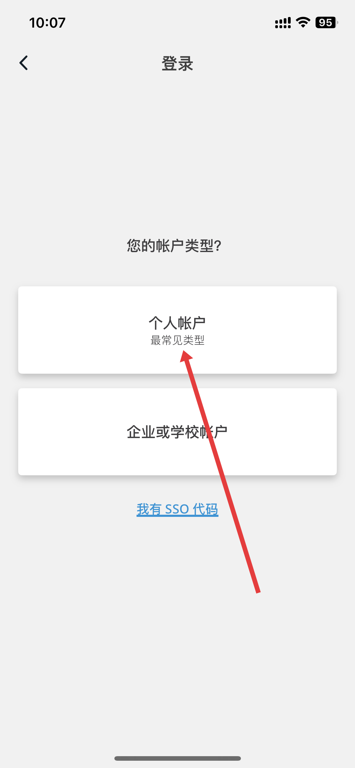 2、進(jìn)入登錄頁(yè)面后,選擇您的帳戶(hù)類(lèi)型,點(diǎn)擊個(gè)人帳戶(hù)。