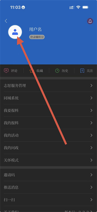 1、在新臨洮個(gè)人中心頁(yè)面,點(diǎn)擊用戶名區(qū)域,進(jìn)入登錄選擇界面。