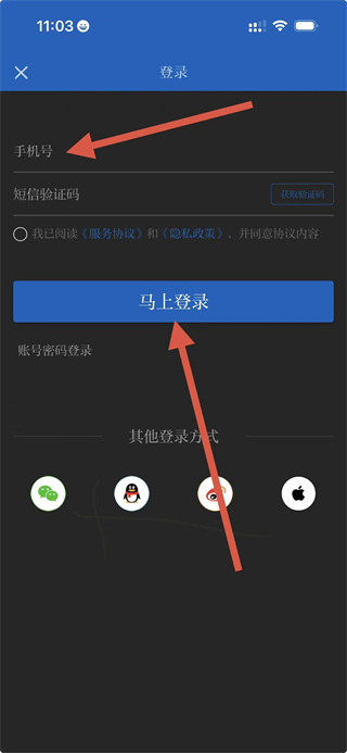 3、輸入手機(jī)號(hào)碼和短信驗(yàn)證碼,勾選同意協(xié)議后點(diǎn)擊馬上登錄按鈕,即可完成新臨洮注冊(cè)登錄操作。