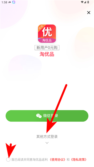 2、在登錄界面,勾選我已閱讀并同意協(xié)議后,點(diǎn)擊其他方式登錄選項(xiàng),彈出登錄方式選擇窗口。