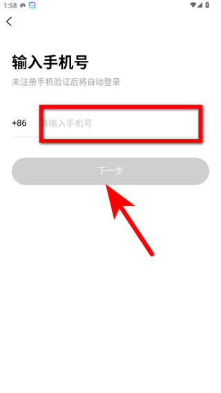 4、在輸入手機(jī)號(hào)頁面,輸入手機(jī)號(hào)并點(diǎn)擊下一步。