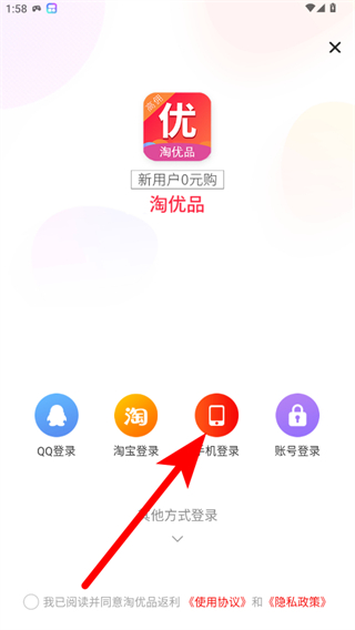3、在登錄方式選擇窗口,點(diǎn)擊手機(jī)登錄選項(xiàng),進(jìn)入輸入手機(jī)號(hào)頁面。