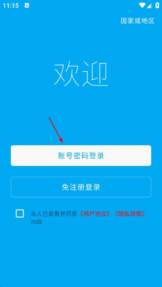 1、打開APP,進(jìn)入歡迎頁面,看到“賬號密碼登錄”和“免注冊登錄”選項,點擊“賬號密碼登錄”,進(jìn)入用戶登錄頁面。